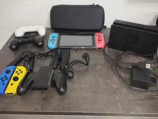 Console Nintendo Switch completa di accessori. 1 Memory card da 128gb Vetro protettivo sul display - Console Switch - Dock per TV - 4 Joy-Con - Impugnatura Joy-Con - Cavi e alimentatore - Custodia da viaggio Tutto quello presente in foto