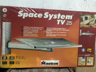 Staffa da muro orientabile per TV, modello Space System TV 25. - Adatta per TV da 20 a 25 (51-63 cm). - Portata massima 45 kg (99 lbs). - Rotazione di 245° e inclinazione di 10°. - Sistema di gestione cavi integrato.