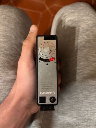 Flash Bauer E181 Ultrablitz in good condition. Flash Bauer E181 ultrablitz. Robert Bosh, photokino gmbh, made in Germany. Non testato, ma in ottime condizioni estetiche. Vedo così come in foto - Silver metallic finish. - Clear plastic cover over flash tubes. - Red Bauer logo.
