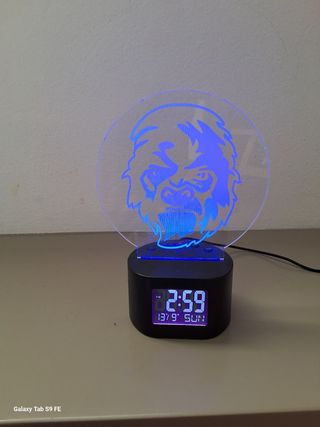 Originale sveglia luminosa con design a tema Bigfoot, perfetta per gli appassionati di gaming o per chi cerca un elemento d'arredo unico. Nuova con scatola e istruzioni. Pile incluse - Luce LED che cambia colore - Display digitale.