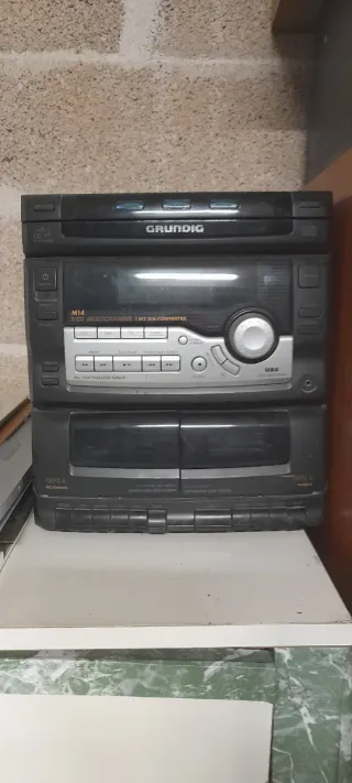 Sistema stereo Grundig M14. - Lettore CD 3 dischi ma non funzionante da riparare il lettore o controllare non so bene - Radio FM/AM. - Doppio deck cassette. - Display digitale. Il dispositivo è stato già aperto e suonato ma non sono riuscito nella riparazione perché non so come fare perciò viene spedito già aperto completo di tutte le sue viti e parti