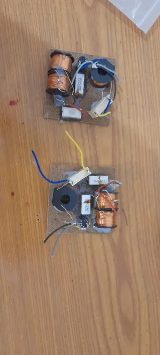 Vendo due filtri crossover per altoparlanti. - Componenti elettronici per la divisione delle frequenze. - Montati su base in materiale composito. - Ideali per sistemi audio. - Venduti in coppia.