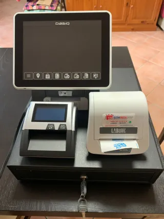Registratore di cassa elettronico Basiq. - Display touch screen. - Stampante integrata. - Cassetto porta contanti con chiave.