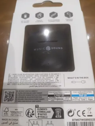 Auricolari wireless Music Sound modello Breeze. - Design compatto e leggero. - Connessione Bluetooth. - Fino a 20 ore di autonomia. - Controllo touch.