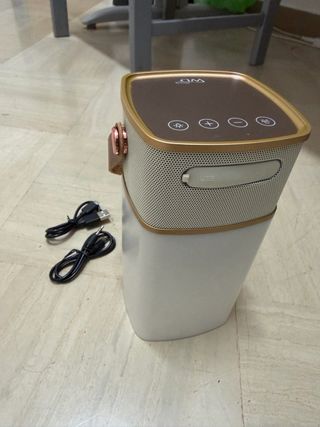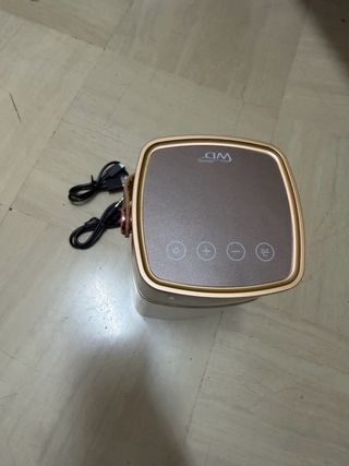 Speaker wireless con un elegante design bicolore. La luce LED integrata crea un'atmosfera suggestiva. - Design moderno e compatto. - Finitura dorata e bianca. Prodotto immacolato