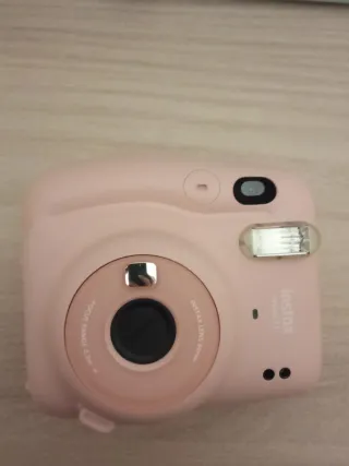Macchina fotografica istantanea dal design moderno e compatto. - Colore rosa pastello. - Logo Fujifilm inciso sul lato.
