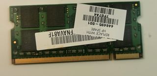Ram 512MB DDR2 2Rx16 PC2-4200S-444-11-A0 iNfineon / HP Notebook Memory HP HYS64T64020HDL-3.7-A SODIMM / A6D62506 Capacity 512MB Pins 200 Pin Bus Type PC-4200 iNFINEON / HP S/C: 9N067400J1C / PN: 374662-481 DOPPIA FACCIA N.B. ATTENZIONE PRIMA DI ACQUISTARE VERIFICARE CHE I CODICI SIANO GLI STESSI RIPORTATI NELLE DICITURE E NELLE FOTO. PRODOTTO USATO FUNZIONATE E TESTATO NON SOGGETTO A GARANZIA DEL PRODUTTORE OGGETTO IN CONDIZIONI COME DA FOTO. QUELLO CHE VEDETE E' QUELLO CHE ACQUISTATE. [rif. Ram13]