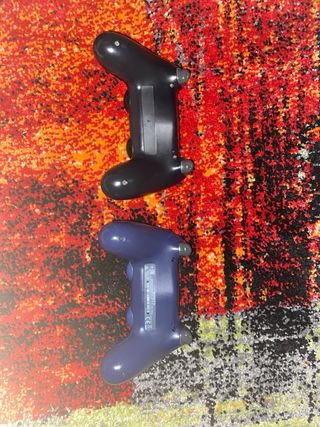 Due controller per PlayStation 4. - Un controller nero. - Un controller blu.