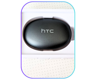 Auricolari wireless HTC NE35 con custodia di ricarica. - Auricolari con design ergonomico. - Custodia di ricarica inclusa. - Logo HTC visibile sugli auricolari.