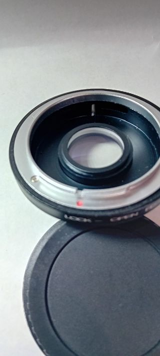 Adattatore per obiettivi Canon FD su corpi macchina Canon EOS. - Permette di montare obiettivi Canon FD su fotocamere Canon EOS. - Costruzione in metallo nero.