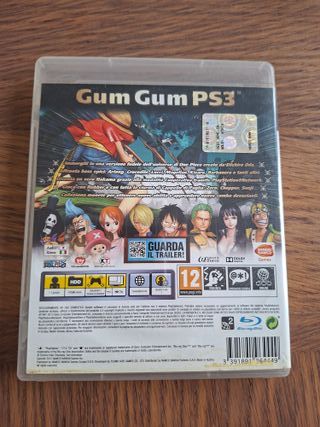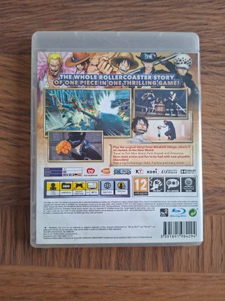 Gioco per PlayStation 3, One Piece Pirate Warriors 3. - Copertina con personaggi del manga. - Etichetta PEGI 12. - Logo Bandai Namco Entertainment.