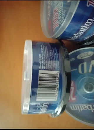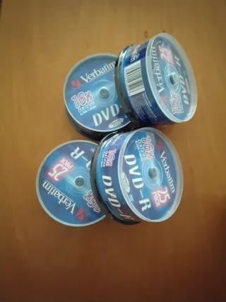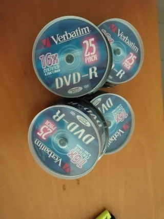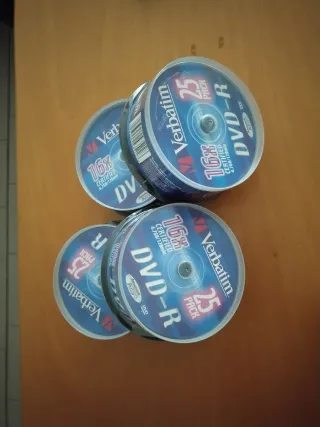 Confezione di DVD-R Verbatim. - 4 confezioni totali. - Ogni confezione contiene 25 dischi. - Velocità di scrittura 16x. - Capacità 4.7GB/120min. - Totale 100dvd