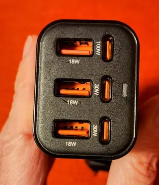 Caricabatterie compatto e versatile, modello YMS-618. - Ingresso AC: 100-240V/50-60Hz 2A. - Uscita USB-C: 5V/3A, 9V/3A, 12V/3A, 15V/3A, 20V/5A. - Uscita USB-C aggiuntiva: 5V/3A, 9V/3A, 12V/2.5A, 15V/2A, 20V/1.5A. - Uscita USB-A: 5V/3A, 9V/2A, 12V/1.5A. - Certificazioni: FC, CE, RoHS.