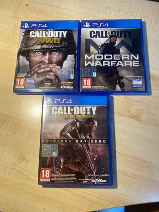 Set di tre videogiochi per PlayStation 4 della serie Call of Duty. - Call of Duty: WWII - Call of Duty: Modern Warfare - Call of Duty: Advanced Warfare Edizione Day Zero
