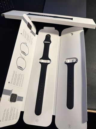 Cinturino sportivo Apple originale, colore midnight blue. - Taglia M/L. - Materiale in fluoroelastomero morbido e resistente. - Chiusura a perno. - 45mm
