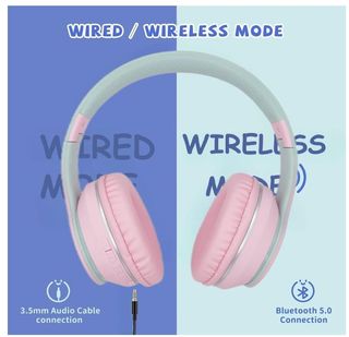 【Connessione Bluetooth Wireless 5.1 】Lasciali in piena libertà! Le cuffie wireless per bambini ti garantiscono una connessione stabile senza distorsioni fino a ben 10 metri di distanza. Usa le cuffie bluetooth bambina Over-Ear con qualsiasi dispositivo dotato di Bluetooth connettore Jack – Smartphone, Tablet, Laptop, Mp3, PC, TV. 【Un suono Hi-Fi di cui innamorarsi】I driver audio al neodimio da 40 mm forniscono un suono stereo in HD e bassi profondi. Le cuffie senza fili sono dotate anche di un cavo da utilizzare in caso si esaurisse la batteria, così potrai continuare a goderti la tua musica senza interruzioni. Modalità wireless.