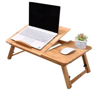 Scrivania per computer portatile in bambù, regolabile e portatile, con cassetto, vassoio pieghevole per la colazione, vassoio imbottito per lavoro, scrittura, disegno, surf, lettura, mangiare