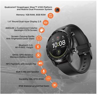 Lunga durata della batteria. La tecnologia 2.0 del display a doppio strato mantiene lo smartwatch Ticwatch Pro 3 Ultra gps fino a 72 ore in modalità Smart e 45 giorni in modalità Essential. La nuova retroilluminazione personalizzabile offre una migliore fruizione visiva, rende lo schermo comodo da leggere in qualsiasi condizione, soprattutto al buio. Chipset aggiornato, migliore esperienza. Wear os Ticwatch Pro 3 smartwatch ultra gps con piattaforma Qualcomm Snapdragon Wear 4100 e sistema a doppio processore Mobvoi. Offri prestazioni e connettività più rapide e fluide. 1G di ram e 8G di memoria rom. Il pagamento nfc supporta Pay.