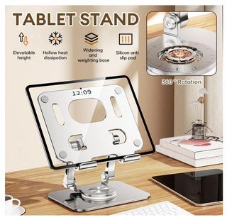 Design ergonomico regolabile】: il nostro supporto per tablet offre altezza e angoli di visualizzazione personalizzabili, garantendo comfort e riducendo lo sforzo. Perfetto per iPad e altri utenti di tablet che cercano un supporto ergonomico. Struttura robusta: realizzato con materiali di alta qualità, questo supporto per tablet da scrivania offre stabilità e durata, supportando il dispositivo in modo sicuro senza oscillare. 【Compatibilità versatile】: progettato come supporto per monitor portatile multifunzionale, può ospitare vari dispositivi, dai piccoli tablet ai monitor più grandi fino a 10,1 pollici (25,7 cm).