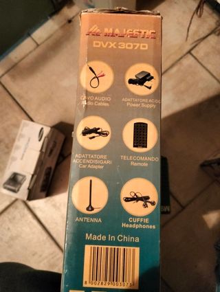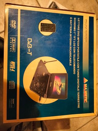 lettore DVD portatile con funzione TV, vecchia generazione, quindi con il nuovo digitale non va. Funziona ancora come da foto, fa un po' di rumore quando gira il DVD, andrebbe pulito internamente dalla polvere. Manca adattatore x auto, cuffie e telecomando.
