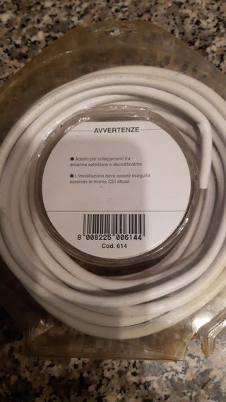 Matassa 10mt di cavo coassiale per collegamenti satellitari. - Diametro 7mm. - Adatto per collegamenti tra antenna satellitare e decodificatore. - L'installazione deve essere eseguita secondo le norme CEI attuali. - Codice: 614 marca SECUR - Impedenza 75 Ohm Prezzo: 4€