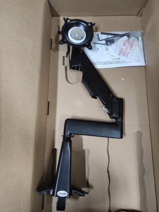 Staffa da tavolo con doppio braccio regolabile, utile per monitor da 10-30", Rotazione verticale e orizzontale e pivot laterale, Molteplici opzioni di montaggio: morsetto per bordo, morsetto per passacavo Regolazione dell'altezza con la punta delle dita con tensione personalizzabileGestione dei cavi integrata per un'installazione pulita. istruzioni montaggio e confezione originale