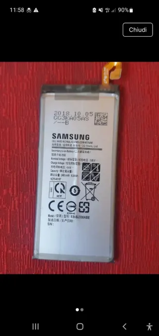 Batteria originale Samsung per smartphone. - Modello: EB-BJ330ABE - Capacità: 2400 mAh 9.24 Wh - Voltaggio Nominale: 3.85V - Voltaggio di Carica: 4.4V - Data di produzione: 2018.10.05