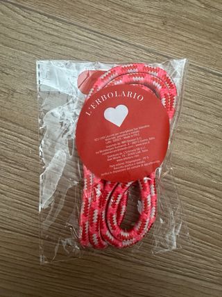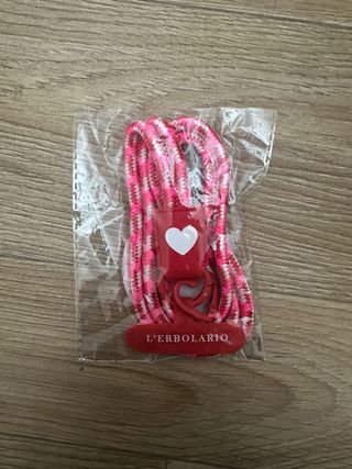 Cordino per cellulare L'Erbolario, nuovo e mai usato. Presenta un design con cuoricino e un laccetto intrecciato nei toni del rosa e bianco. - Laccetto intrecciato rosa/bianco - Dettaglio a forma di cuore bianco - Clip di aggancio rossa