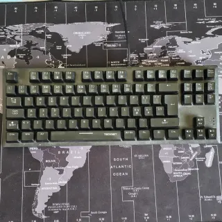 Tastiera meccanica con switch blu, ideale per il gaming. Design moderno e resistente. È perfettamente funzionante, presenta 2 graffietti sui tasti S e D come si vede in foto, che però non influiscono sul funzionamento. Layout italiano, 75% - Switch blu per un feedback tattile e sonoro. - Layout QWERTY italiano. - Illuminazione personalizzabile.