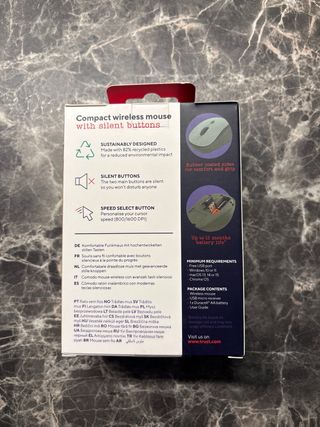 Mouse wireless Trust YVI+ Silent, con un diseño compacto y silencioso. - Producto fabricado con 82% de plásticos reciclados. - Alcance inalámbrico de 8M. - Batería de larga duración.