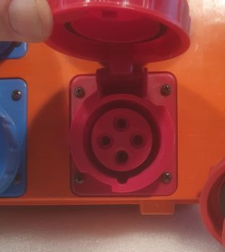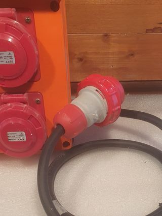 Quadro cantiere alimentazione 400 V 16 A. 3 fasi piu terra Uscite 4 prese 400 V 16 A. 3 fasi piu terra Protezione con magnetotermico tripolare C 16 e differenziale 30 mA Per motivi di lavoro, normalmente l'oggetto verrà spedito il sabato successivo al pagamento.