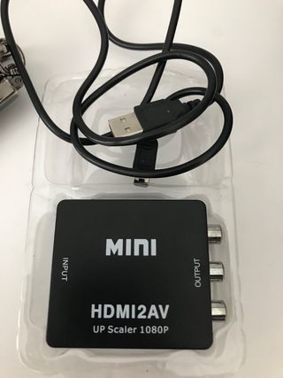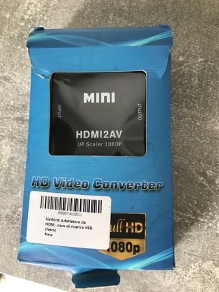 Convertitore HDMI a AV Mini. Perfetto per collegare dispositivi HDMI a TV o monitor con ingressi AV. - Converte segnali HDMI in segnali AV. - Supporta risoluzione fino a 1080p. - Include cavo USB per l'alimentazione. - Compatto e facile da usare. - In ottime condizioni estetiche.