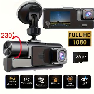 Telecamera per auto con tre obiettivi e risoluzione Full HD 1080p. - Rotazione 230° - Angolo di visione 170° - Rilevamento movimento - G-Sensor - Registrazione in loop - Visione notturna - Scheda SD 32GB inclusa
