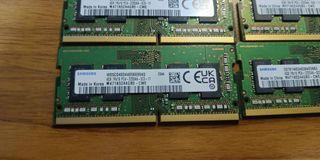 5 unità di memoria RAM Sodimm, marca Samsung da 4GB DDR4 da 3200 Mhz. Le memorie sono state prese da notebook a cui è stato effettuato un upgrade, quindi le RAM sono praticamente nuove!