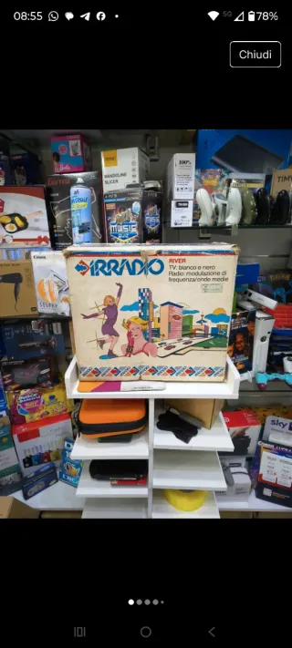 Televisore portatile Irradio. - Schermo bianco e nero. - Modulazione di frequenza/onde medie. Prodotto credo sia nuovo ma con vari segni di usura del tempo Aprendo lo sportello della batteria ci si accorge che non sono mai state inserite Ho provato la radio e funziona si sente una favola Ho provato anche l annessione dello schermo e mi sembra tutto apposto come potete notare dalle foto una vera chicca per gli appassionati Non ho un prezzo fisso su questo articolo non conosco il vero valore quindi possiamo trattare col prezzo Per chi fosse interessato mi contatti