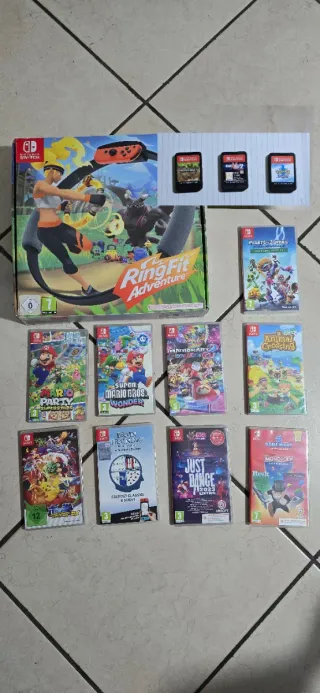 11 giochi nintendo switch + 2 scatole per Nintendo Switch 1 e Nintendo Switch 2. Aperta a trattative. Super Mario Bros. Wonder - 40€ Mario Kart 8 Deluxe - 40€ Animal Crossing New Horizon - 40€ Mario Party Superstars - 40€ Dr. Kawashima's Brain Training con pennino - 30€ Ring Fit Adventure - 50€ Pokemon Tekken dx + Pokken Tournament dx - 25€ Plants vs Zombies Edizione Completa con scatola leggermente danneggiata - 15€ Pokemon Sword, solo cartuccia - 30 Minecraft, solo cartuccia - 10€ Dragonball Xenoverse 2, solo cartuccia - 8€ Hasbro Game Night: Monopoly, Risico e Trivial Pursuit, scatola vuota - 5€ Just Dance 2023, scatola vuota