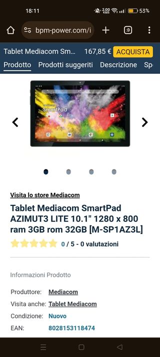 Tablet iyo 8"MEDIACOM sigillati e nuovi di fabbrica. Quello che vedete è il mio personale e quindi aperto per farvelo vedere.
