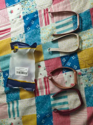 Set di quattro cinturini di ricambio per Xiaomi Mi Band 5. - cinturini bordeaux e rosa antico usati - rosa chiaro e beige NUOVI MAI INDOSSATI - Colori assortiti: rosa antico, beige, rosa chiaro e bordeaux. - Materiale in silicone flessibile. - Chiusura regolabile con fori.