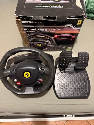 Volante Thrustmaster Ferrari 458 Italia con pedaliera inclusa, compatibile Xbox 360 (potenzialmente PC con adattatori). L’unità si accende correttamente ma non ho modo di testare il funzionamento (force feedback, input pedali, compatibilità giochi). Vendo as-is. Ideale per chi cerca ricambio, riparazione o prova. Vedi foto per condizioni estetiche; scatola un po’ usurata. Spedisco con tracciamento o ritiro a mano. Prezzo trattabile. Parole chiave da inserire: Thrustmaster, Ferrari 458, volante, pedaliera, Xbox 360, PC, racing wheel, force feedback (non testato), volante usato, gaming accessories.