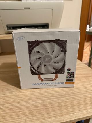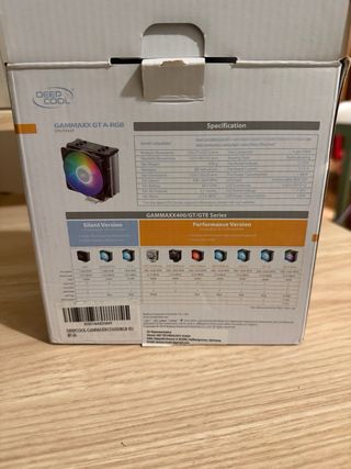 Ventola CPU Deepcool GAMMAXX GT A-RGB perfettamente funzionante, testata da negozio di elettronica. Completa di staffe e accessori, pronta per l’installazione. Ideale per modelli Intel e AMD. Illuminazione A-RGB, efficienza e silenziosità garantite.
