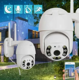 Set di 2 telecamere IP esterne con risoluzione Full HD 1080P. Ideali per la sorveglianza. - Connessione Wi-Fi - Funzione Human Tracking - Grado di protezione IP66 - Visione notturna - Rotazione PTZ (Pan-Tilt-Zoom)
