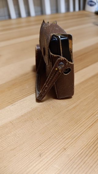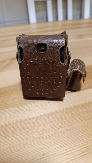 Fotocamera Kodak vintage, un pezzo da collezione. - Design classico con finiture in similpelle. - Colore nero e marrone. - Ideale per appassionati di fotografia retrò.