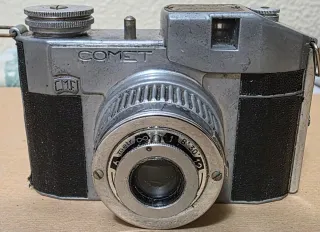 Macchina fotografica d'epoca, un pezzo da collezione. - Corpo in pelle nera. - Dettagli in metallo argentato.