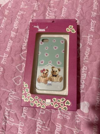 Cover originale Thun per iPhone SE, mai usata. Presenta un simpatico disegno con due orsetti e cuoricini Thun. - Design con orsetti e cuoricini. - Colore azzurro pastello.