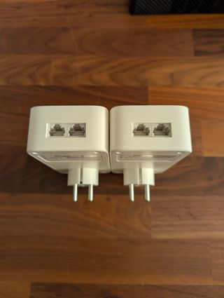 Set di due adattatori Powerline TP-Link G.hn2400. - Velocità G.hn fino a 2400 Mbps. - Due porte Gigabit Ethernet per adattatore. - Ideali per estendere la rete domestica tramite la linea elettrica.