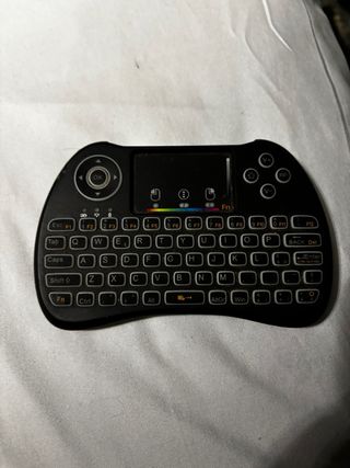 Tastierino compatto con layout QWERTY, ideale per controllare smart TV e altri dispositivi. - Design ergonomico. - Touchpad integrato. - Tasti funzione dedicati. - retroilluminato