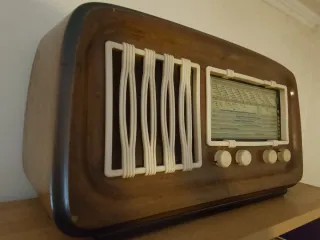 RADIO D'EPOCA GELOSO, anni 40/50, parzialmente funzionante (si accende ma non sintonizza le stazioni italiane/estere). - Struttura in legno marrone. - Pannello frontale con griglia e quadrante. - Manopole per la regolazione.