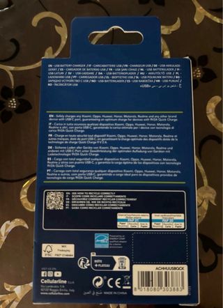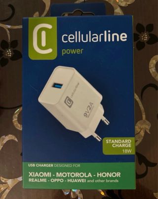 Caricabatterie USB Cellularline da 18W. - Standard Charge. - Compatibile con Xiaomi, Motorola, Honor, Realme, Oppo, Huawei e altri marchi.