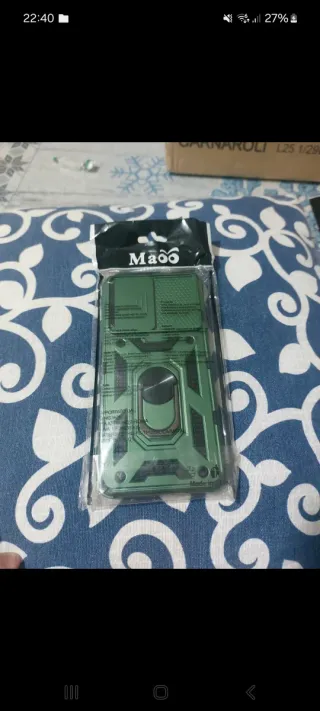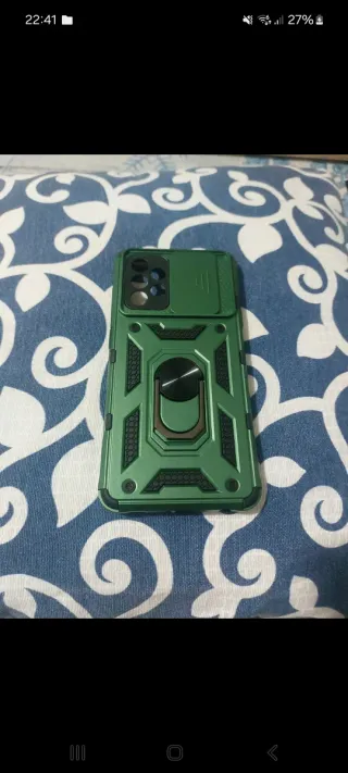 Cover protettivo per smartphone Samsung - Colore verde metallizzato e nero - Design robusto con bumper in tpu, con anello porta-dita. - Protezione per la fotocamera antiurto scorrevole. Nuova mai usata.uscita per far le foto.vendo per cambio cell