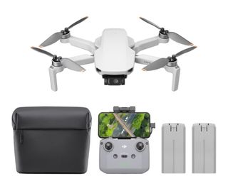 Set completo per il volo con drone DJI. - Drone DJI Mini con fotocamera 4K. - Telecomando. - Borsa per il trasporto. - Due batterie aggiuntive.
